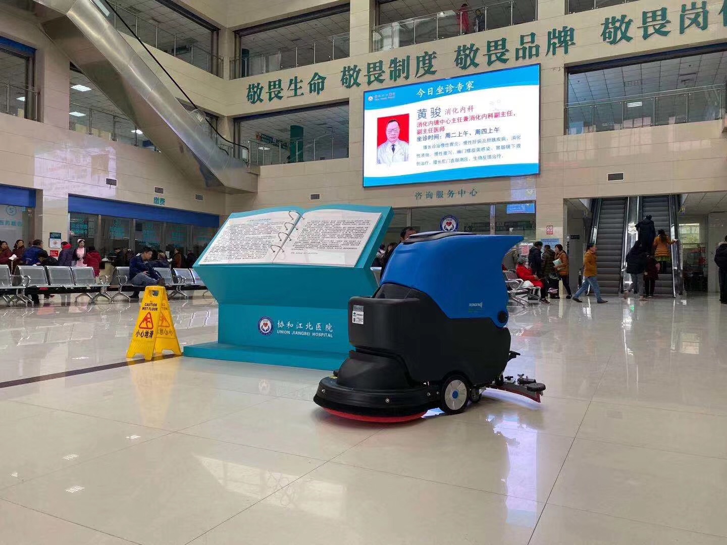 2、洗地机使用小技巧:特别脏的地面可选择首先不吸水单独多次重复洗刷,然后在单独吸水;对于不平的地面,有时虽经清洗,若仍有积水,则可将刷盘升起,启动吸水开关,推动洗地机,在积水区域,反复、多次的吸纳。