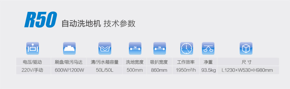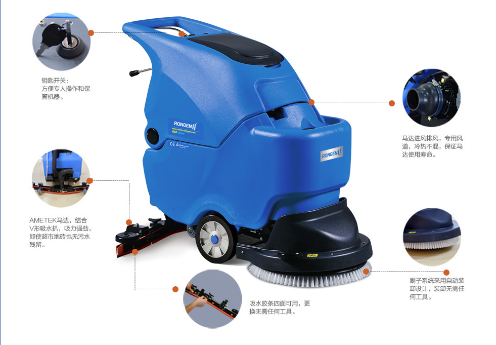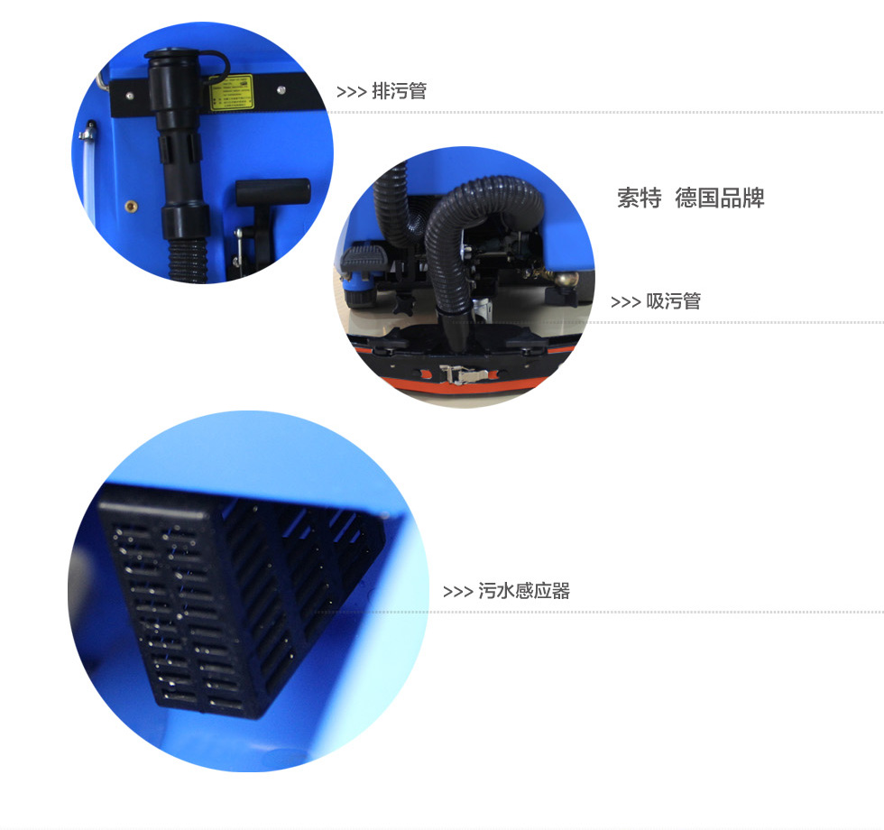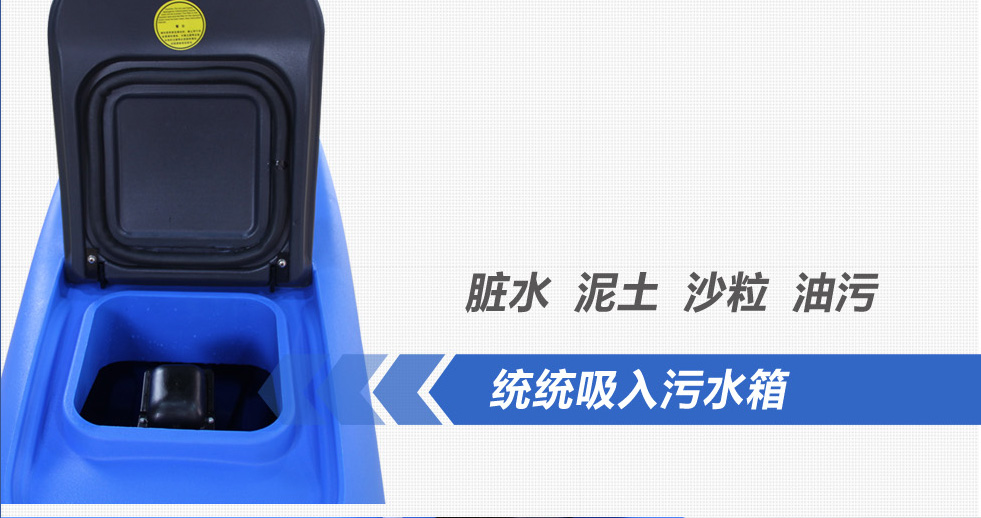 洗擦、吸干一次性完成,洗刷吸干过的地面,洁净如新,脏水、泥土、沙粒、油污统统吸入污水箱;可清洁不同的材质地面,如:环氧树脂地面,油漆地面,混凝土,瓷砖地面等。