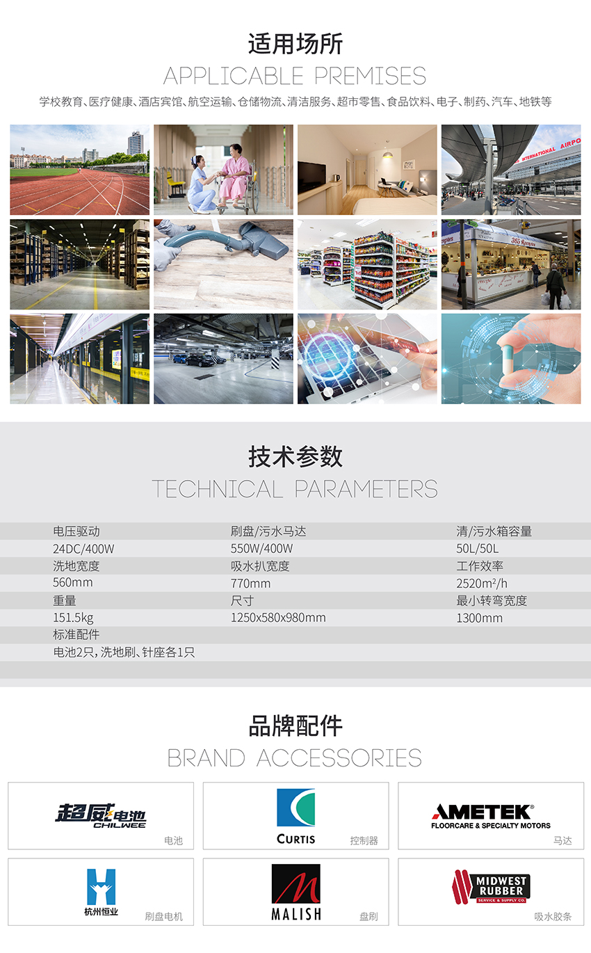 用途:全自动手推式洗地机,简化清洁工作,显著提高清洁卫生质量。